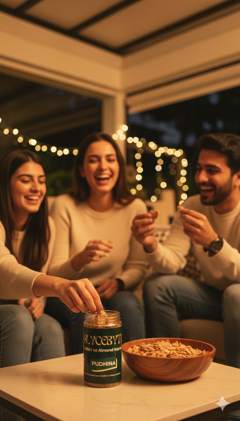 Light, refreshing, and flavourful. Thinly sliced almonds baked and ghee-roasted, coated with a cool pudina seasoning for a fresh, guilt-free snacking experience.